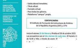 Polideportivo • 28.03.2022Unas 2.900 personas privadas de libertad, alojadas en 21 cárceles bonaerenses comenzaron de manera virtual, un curso de arbitraje de fútbol que dará un... (sigue)