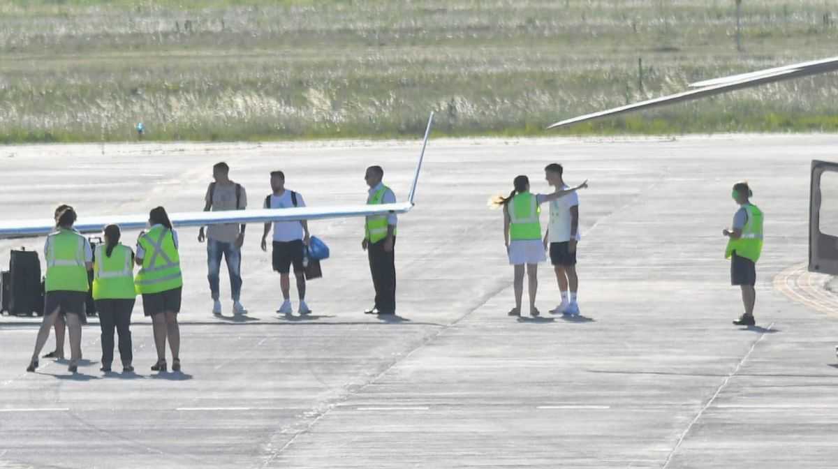 El cordobés Dybala, que todavía debe recorrer otros 350 kilómetros hasta llegar a la localidad de Laguna Larga, de donde es oriundo, fue el primero en descender del avión y dirigirse a retirar su equipaje.