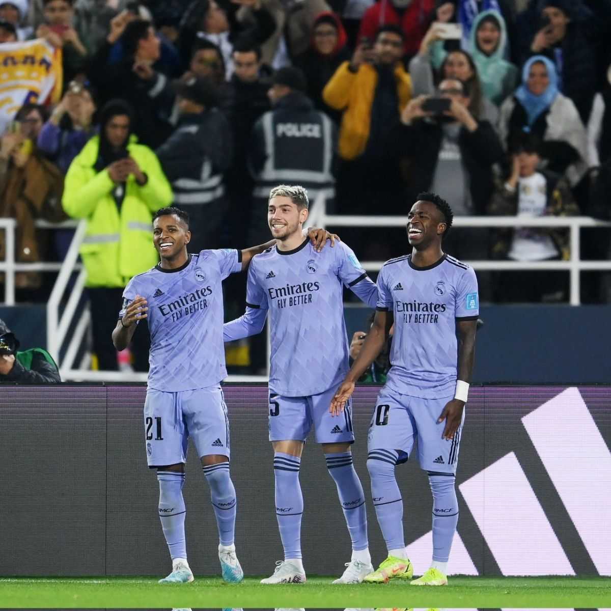 Los brasileños Vinicius Jr. (PT 42m) y Rodrygo (ST 45+2m), el uruguayo Federico Valverde (ST 1m) y el español Sergio Arribas (ST 45+7m) marcaron para el último campeón y máximo ganador de la Liga de Campeones de Europa, en tanto el turco Ali Maâloul (ST 20m, de tiro penal) señaló el descuento en el estadio Príncipe Moulay Abdellah de la ciudad de Rabat.