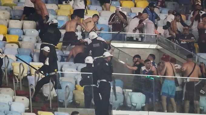 Lo que no te muestra la Conmebol. Disturbios en el Maracaná, vuelan gases, palazos y balas de goma. Una vergüenza lo de la policía brasilera con los hinchas de Lanús. https://t.co/XPMkSfWOzp pic.twitter.com/aWF2YxxgXV
